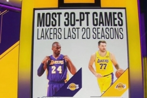 这是东契奇本赛季第37次单场30+,过去20个赛季,湖人单赛季30+最多的是06-07赛季科比的38次。