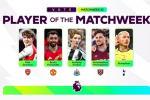 体育资讯3月17日讯 英超官方公布了本轮的最佳候选名单,由B费、道曼领衔。