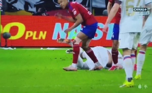波多尔斯基在比赛第90分钟替补登场,他在第92分钟报复动作击打了对方球员阿梅亚乌的腹部,被裁判红牌罚下。