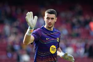 在欧冠7-2大胜纽卡斯尔的比赛中,巴萨门将霍安·加西亚在第81分钟受伤离场。