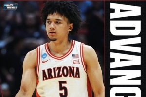 体育资讯3月23日讯 今日NCAA疯三32强赛,赛区1号种子亚利桑那大学78-66击败赛区9号种子犹他州立大学,晋级16强。
