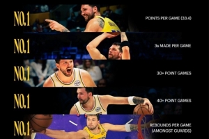 体育资讯3月25日讯 今天,湖人官方晒出了东契奇的几项数据记录,并写道:“数据不会说谎。”详情如下: