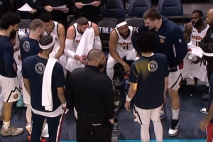 GIF-约基奇场边手舞足蹈跟队友沟通