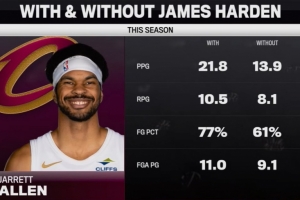 加盟前:场均13.9分8.1篮板,投篮命中率61%,场均出手9.1次