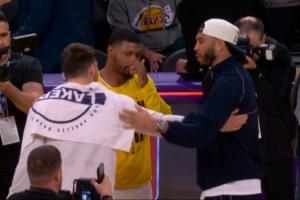 GIF-东契奇和绿军众将拥抱一下 还和塔图姆聊了聊